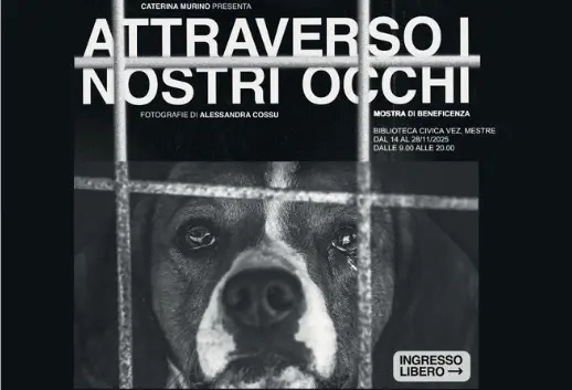 Fino a cinque anni fa, gli animali mi interessavano poco, li ammiravo da lontano senza sentirli parte del mio mondo” dichiara Caterina Murino. “Poi ho scoperto la realtà dei randagi, degli abbandoni e dei maltrattamenti, dove cani e gatti vengono trattati come oggetti. Questa mostra nasce per farvi soffermare sui loro occhi, perché in essi vive la stessa anima che ci fa vivere e soffrire, esattamente come noi. Tutti gli incassi delle vendite delle foto e delle donazioni saranno devoluti alle associazioni Venete che lottano quotidianamente per salvare gli animali di nessuno”.