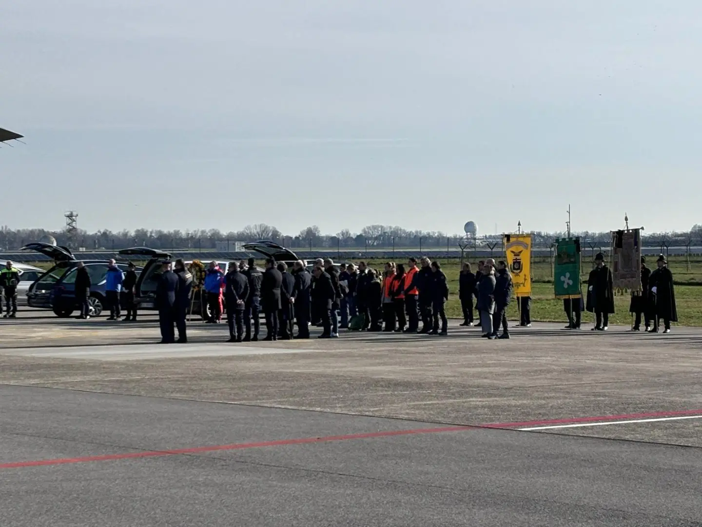 Ad attendere l’arrivo dei feretri in rappresentanza delle istituzioni il Presidente del Senato Ignazio La Russa, Il sindaco di Milano Giuseppe Sala, il presidente di Regione Lombardia Attilio Fontana, il presidente dell’Emilia-Romagna Michele de Pascale, il Presidente della Liguria Marco Bucci, il prefetto di Milano Claudio Sgaraglia e il capo della protezione civile Fabio Ciciliano.