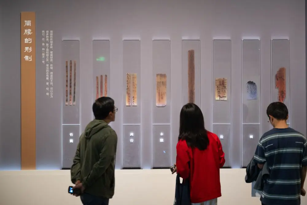 WUHAN (CINA) (ITALPRESS/XINHUA) – Persone visitano la mostra “Antiche tavolette di bambù e legno cinesi” presso il Museo Provinciale di Hubei a Wuhan, nella provincia centrale cinese di Hubei. Con la presenza di 230 pezzi (o serie) di tavolette di bambù e legno provenienti da diversi periodi storici, la mostra è stata inaugurata qui martedì. Le tavolette di bambù e legno, ciascuna contenente una stretta colonna verticale con dozzine di caratteri, possono essere considerate la più antica forma di libri della Cina. Erano i più importanti oggetti su cui scrivere prima dell’invenzione della carta.