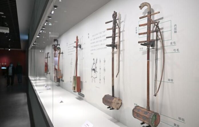La mostra è stata inaugurata sabato e presenta 143 antichi strumenti musicali provenienti da Paesi lungo la Via della Seta.