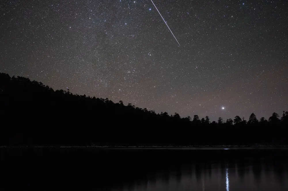 KANGDING (CINA) (XINHUA/ITALPRESS) – Questa foto, scattata il 14 dicembre 2025, mostra lo sciame meteorico delle Geminidi nel cielo sopra il lago Niujiaohai, nella contea di Ganluo, nella provincia sud-occidentale cinese del Sichuan. Lo sciame, uno dei più spettacolari dell’anno, ha raggiunto il suo picco il 14 dicembre.