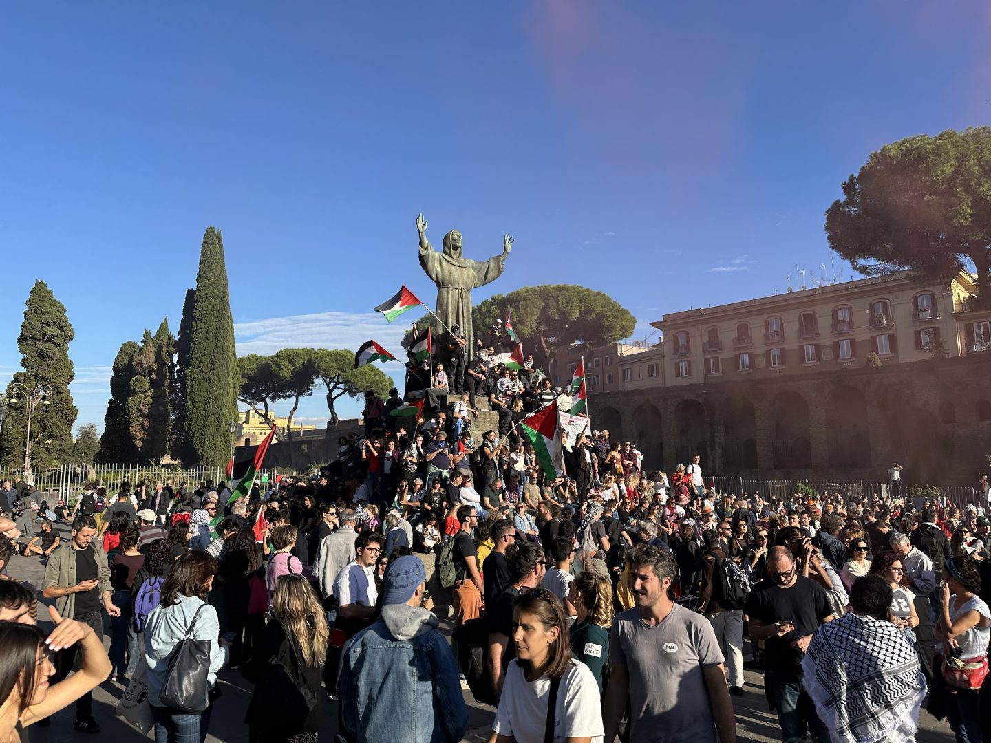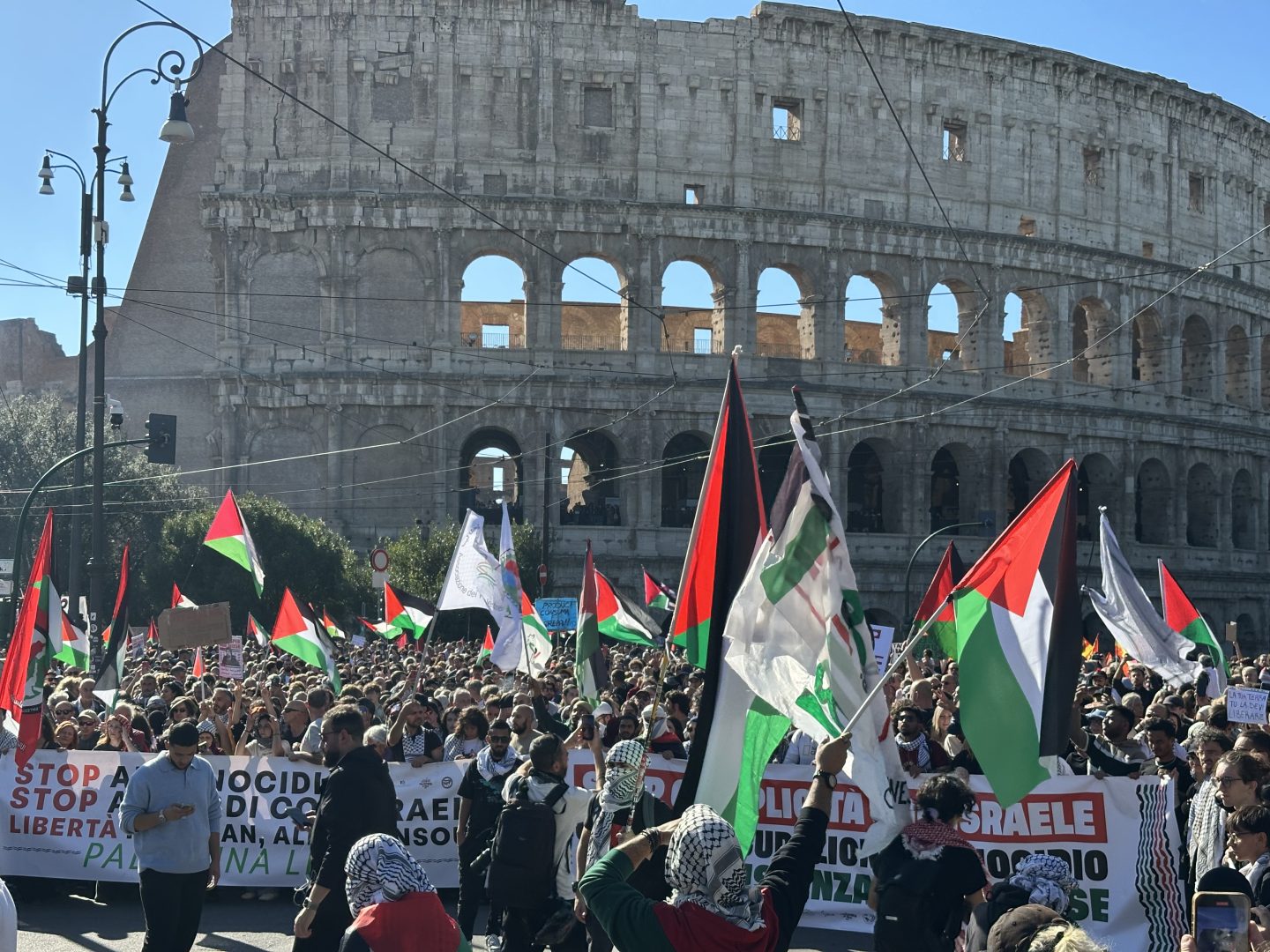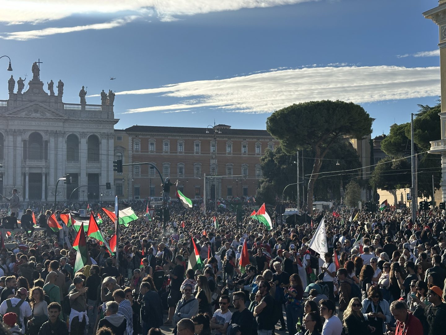 Il corteo è partito alle 14.30 e ha raggiunto piazza San Giovanni intorno alle 16.30, attraversando il centro storico e l’area del Colosseo. “Roma è bloccata. Tutta. Siamo un milione di persone per la Palestina. Abbiamo bloccato tutto. L’Italia sa da che parte stare”, hanno fatto sapere gli organizzatori. La Questura ha stimato la partecipazione in circa 250 mila persone. Durante la marcia si sono levati diversi cori, tra cui “Governo Meloni dimissioni”, “Meloni complice del genocidio”, “Israele complice del genocidio”, “Israele stato terrorista”, “Siamo tutti antifascisti” e “Palestina libera”. “Noi stiamo qui dove ci sono persone che condividono lo stesso sentimento di indignazione per quanto avviene a Gaza e in Cisgiordania”, ha detto Nicola Fratoianni (Avs) parlando con i cronisti. Verso le 19, in zona San Giovanni, un gruppo di circa 200 antagonisti vestiti di nero e con il volto coperto si è staccato dalla manifestazione. Un centinaio di loro ha tentato di deviare verso Santa Maria Maggiore, ma è stato bloccato e identificato dalla polizia.