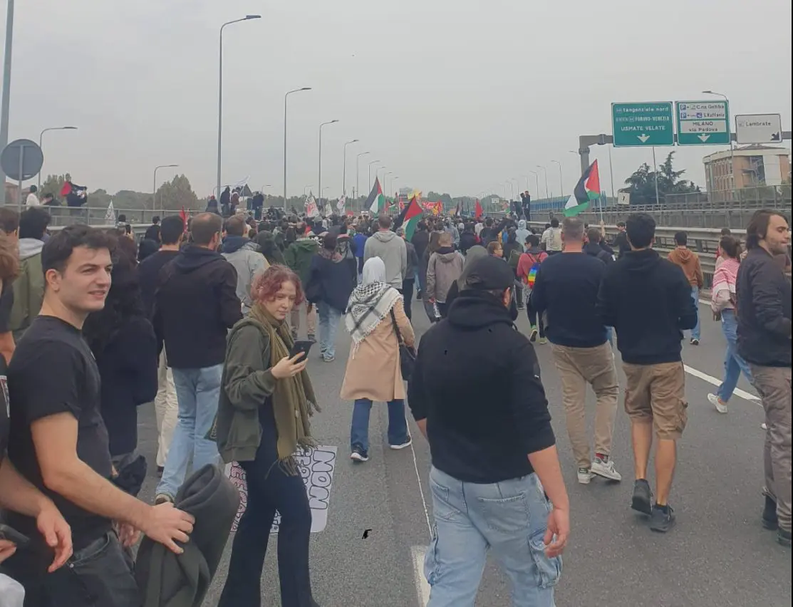 Il corteo Pro Pal raggiunge la tangenziale Est di Milano, traffico bloccato