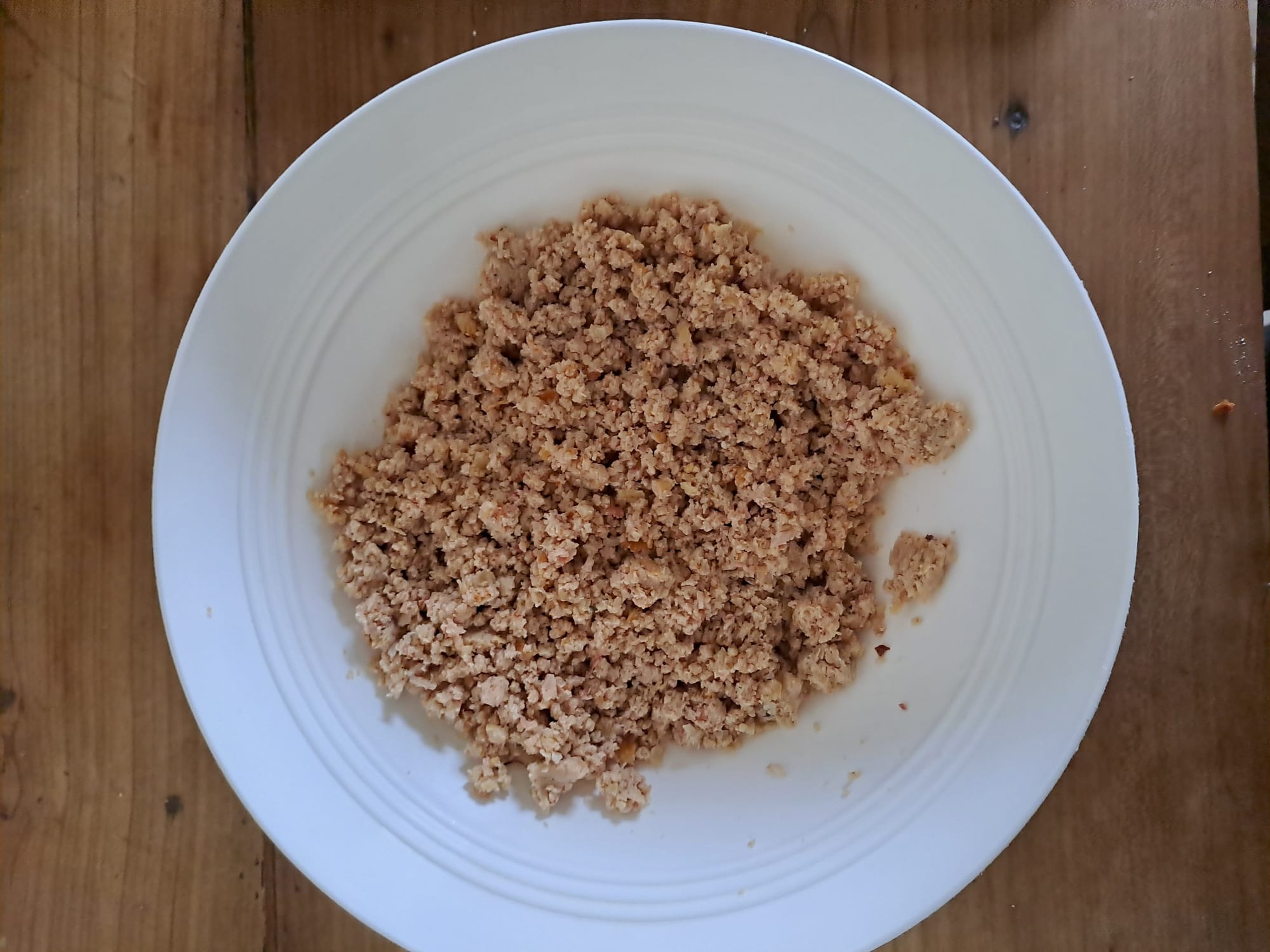 Aiutandomi con un goccio di acqua tiepida, ho impastato il tutto con le mani, fino a ottenere una consistenza compatta ma morbida da lavorare. Inumidendo i palmi delle mani ho quindi creato delle palline.