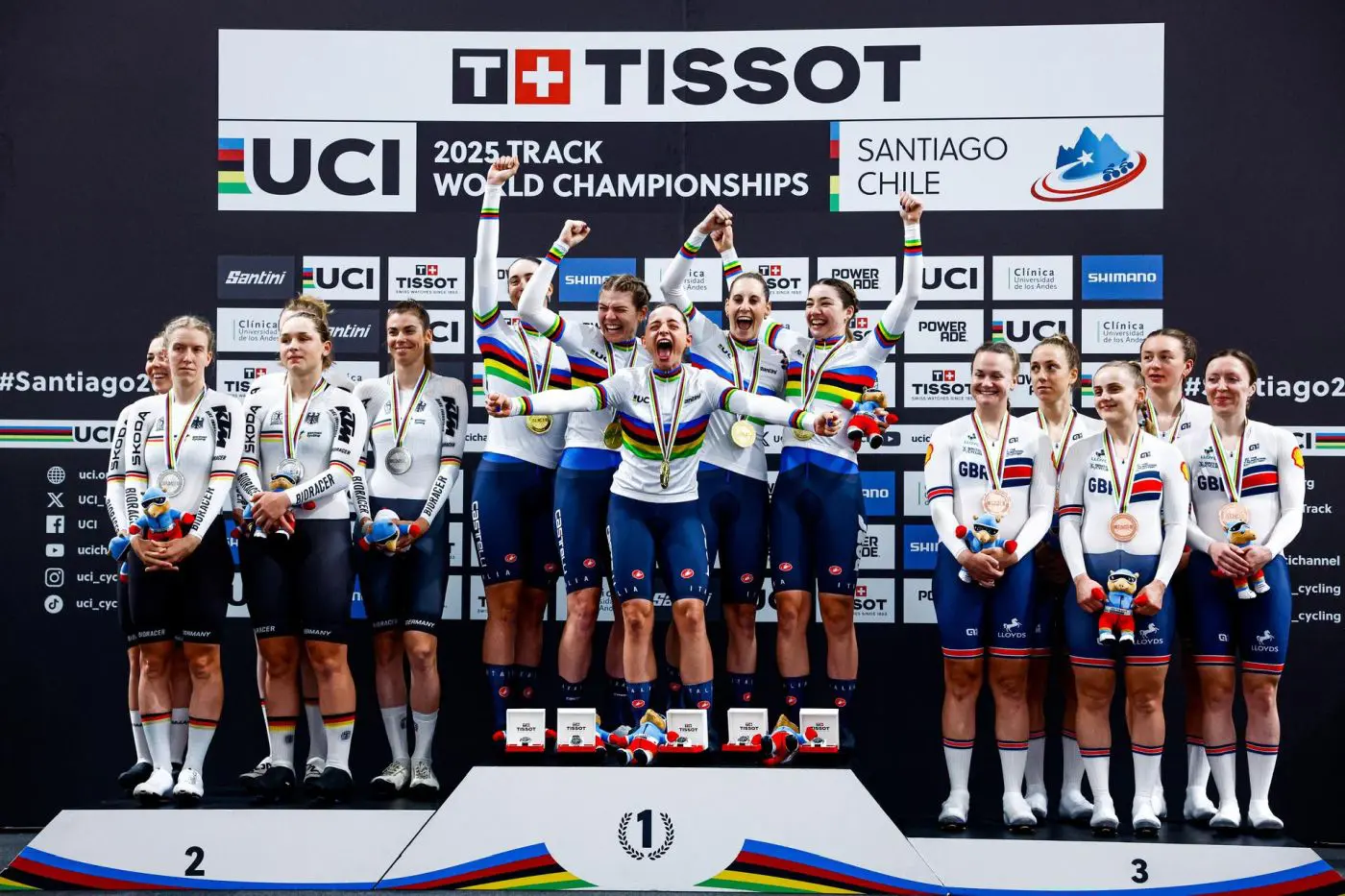 Molto soddisfatte le azzurre. Per Vittoria Guazzini: “È stata un’emozione incredibile. Forse lì per lì, quando ero in pista, non me la sono goduta appieno perché ero veramente a tutta. Ma ci voleva, ci credevamo. Volevamo tantissimo questo risultato e, da un certo punto della stagione in poi, ci siamo messe lì con i nostri tecnici: abbiamo deciso insieme i giorni in cui trovarci, nessuna si è mai tirata indietro, l’abbiamo fatto tutte con tanta volontà. E oggi siamo qui a festeggiare”.