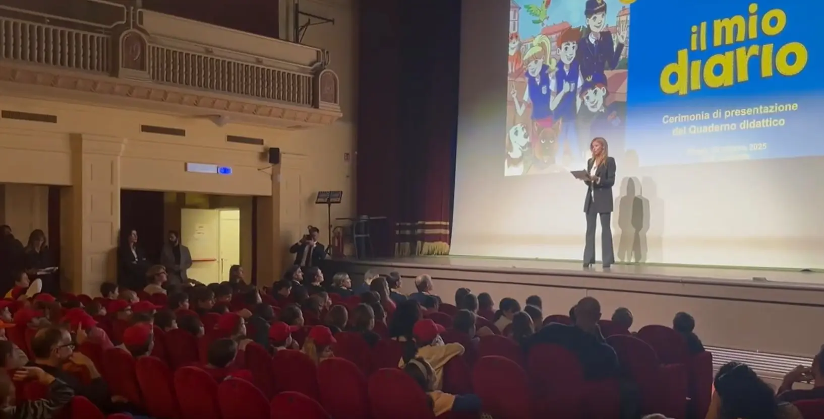 ROMA (ITALPRESS) – È stato presentato oggi, presso il teatro “Sala Umberto” di Roma, la nuova edizione del Quaderno Didattico “Il Mio Diario” realizzato dalla Polizia di Stato. L’evento, moderato dalla giornalista Roberta Floris, si è svolto alla presenza del Capo della Polizia, Direttore Generale della Pubblica Sicurezza, Prefetto Vittorio Pisani. Sono intervenuti rappresentanti del Ministero dell’Istruzione e del Merito nonchè esponenti della cultura e dello spettacolo vicini al mondo dei giovani, tra cui la scrittrice Elisabetta Dami, autrice del noto personaggio della letteratura per ragazzi Geronimo Stilton, che arricchisce la narrazione fin dalla prima edizione del Diario con importanti contributi valoriali e d’intrattenimento, la cantautrice Sarah Toscano con un video saluto, la squadra giovanile della AS Roma e atleti olimpici dei Gruppi Sportivi “Fiamme Oro” della Polizia di Stato. Quest’anno c’è stata una grande novità: il diario ha cambiato volto, non è più un’agenda scolastica ma un vero e proprio Quaderno didattico interattivo. Uno spazio in cui scrivere, esprimere le proprie emozioni e crescere, sempre insieme agli amici della Polizia di Stato ed i supereroi della legalità. Un compagno di viaggio pieno di attività, curiosità, vignette, sticker e pagine da personalizzare che vi accompagnerà nel corso di tutto l’anno.