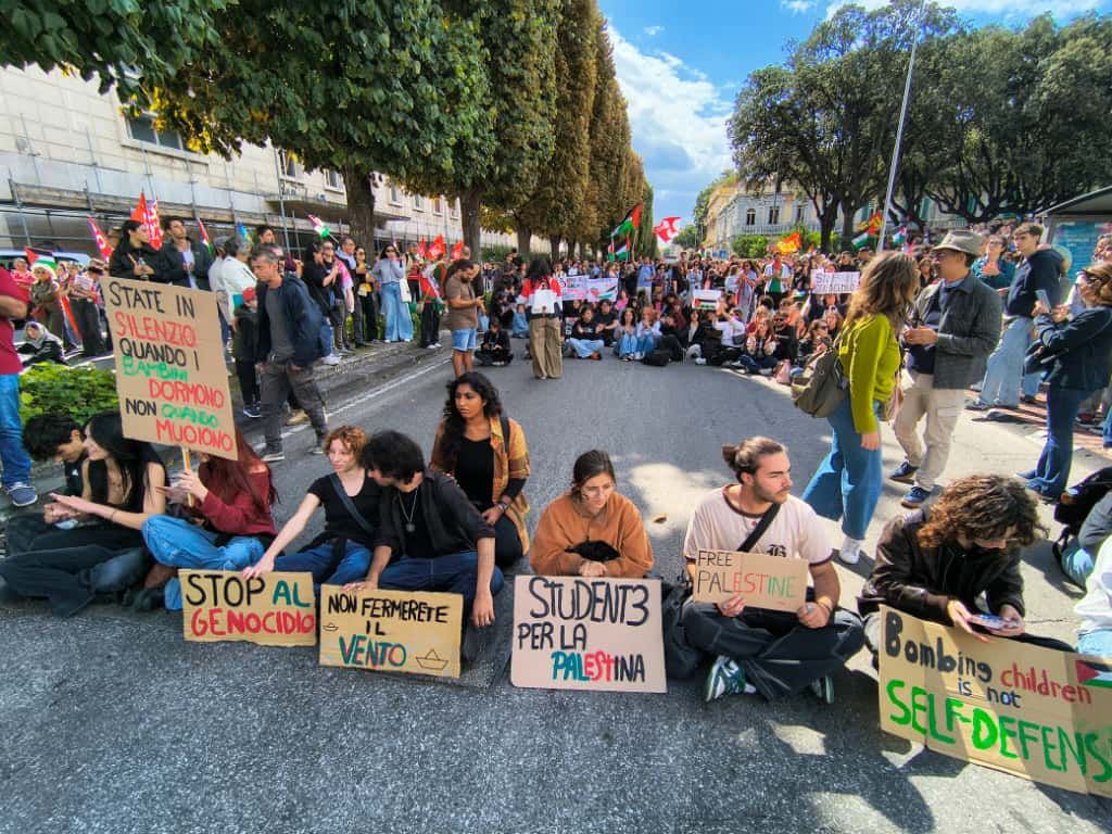 Momenti di tensione a Messina, per lo sciopero generale in solidarietà con la popolazione di Gaza, dopo l’abbordaggio in acque internazionali della Global Sumud Flotilla da parte della Marina israeliana. La manifestazione, convocata dalla Cgil, ha preso il via alle 9:30 da piazza Antonello, attraversando le principali arterie cittadine fino a piazza Unione Europea. In strada lavoratori, studenti e cittadini. Attimi di tensione in via Garibaldi, dove i manifestanti si sono seduti occupando la carreggiata davanti a Palazzo Zanca, sede del Municipio, bloccando la circolazione.