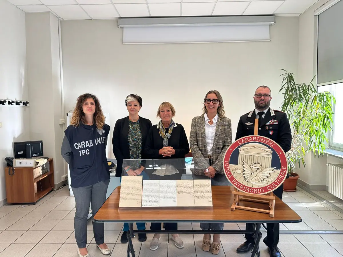 TORINO (ITALPRESS) – Il Comando Carabinieri Tutela Patrimonio Culturale questa mattina ha restituito all’Archivio Storico della Città di Torino, da cui erano state rubate, cinque lettere autografe del re Carlo Alberto. Si tratta di missive inviate dal re nel periodo fra il 1835 e il 1836 al marchese Emanuele Pes di Villamarina, all’epoca dei fatti Primo Segretario di Stato di guerra e marina e Primo segretario di Stato per gli affari di Sardegna.